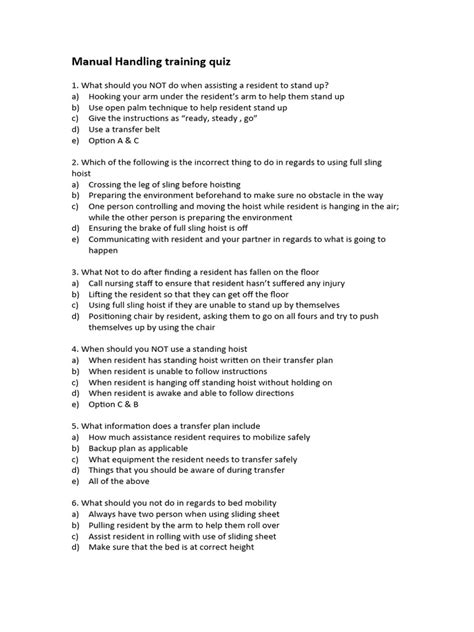Download Manual handling multiple choice questions PDF